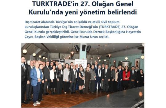 24 Şubat 2016 Çarşamba günü yapılan 22. Olağan Genel Kurul Toplantısında Yönetim Kurulu Başkanlığı’na Hayrettin Çaycı seçildi. Halen Sarkuysan Elektrolitik Bakır Sanayi ve Ticaret A.Ş.’nin Yönetim Kurulu Başkanlığı görevini yürüten Hayrettin Çaycı, bundan böyle dış ticaret alanında Türkiye’nin en etkili sivil toplum kuruluşlarından olan TURKTRADE’in başkanlığı görevini de üstlenecek.