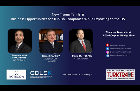 Yılın son webinarında, konuşmacılarımız Doç. Dr. Sayın Uğur Asal ve Sayın Cahit Soysal, 2025 yılının küresel ticarette diplomasi gündemini; bölgesel serbest ticaret anlaşmaları (BRICS vb.) ticaret koridorları, ticaret savaşları gibi başlıklar bağlamında TURKTRADE YK Başkan Yardımcısı Sayın Zeynep Kuman’ın Moderatörlüğünde ele alarak, küresel ticaret konjonktüründeki tüm bu gelişmelerin ihracatımızın rekabet gücüne etkilerini değerlendirdiler.